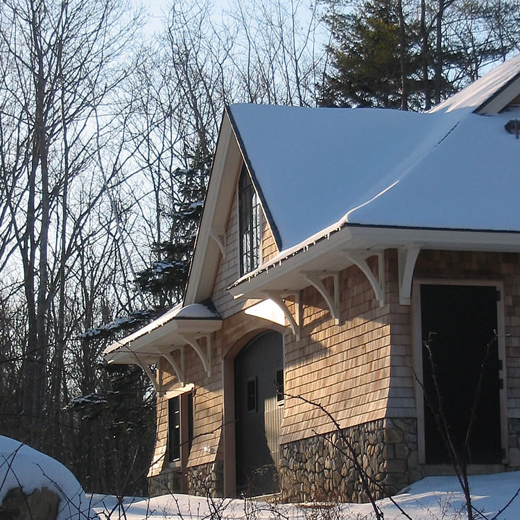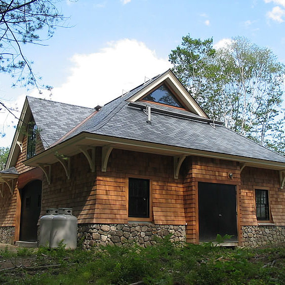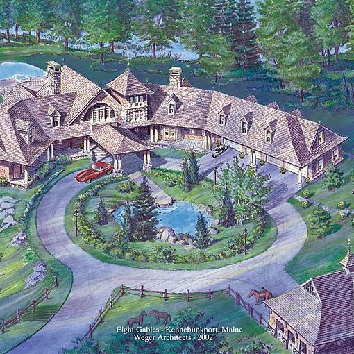 This gracious shingle-style estate is located on the southern coast of Maine and was designed to include the main house, horse barn, vanishing-edge swimming pool, and tennis pavilion.